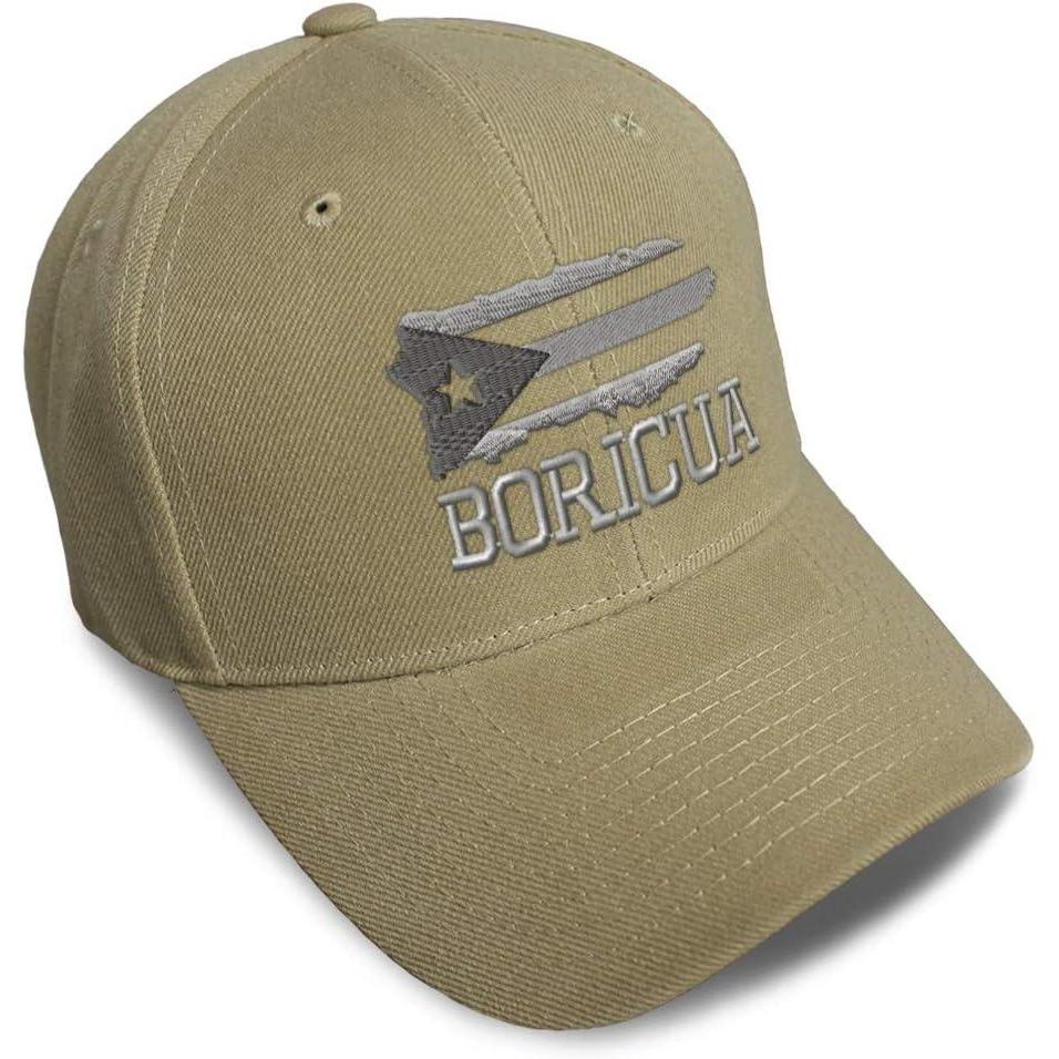 Baseball Cap Puerto Rico Island Map Flag C Embroidery Dad Hats for Men & Women(Khaki)
