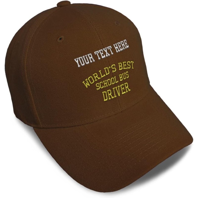 Baseball Cap Worlds Best School Bus Driver Embroidery Others School Bus Driver Embroidery Acrylic Dad Hats for Men & Women(Brown Personalized Text Here)