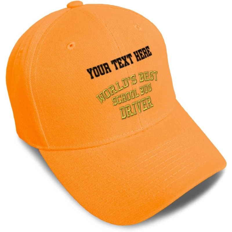 Baseball Cap Worlds Best School Bus Driver Embroidery Others School Bus Driver Embroidery Acrylic Dad Hats for Men & Women(Orange Personalized Text Here)
