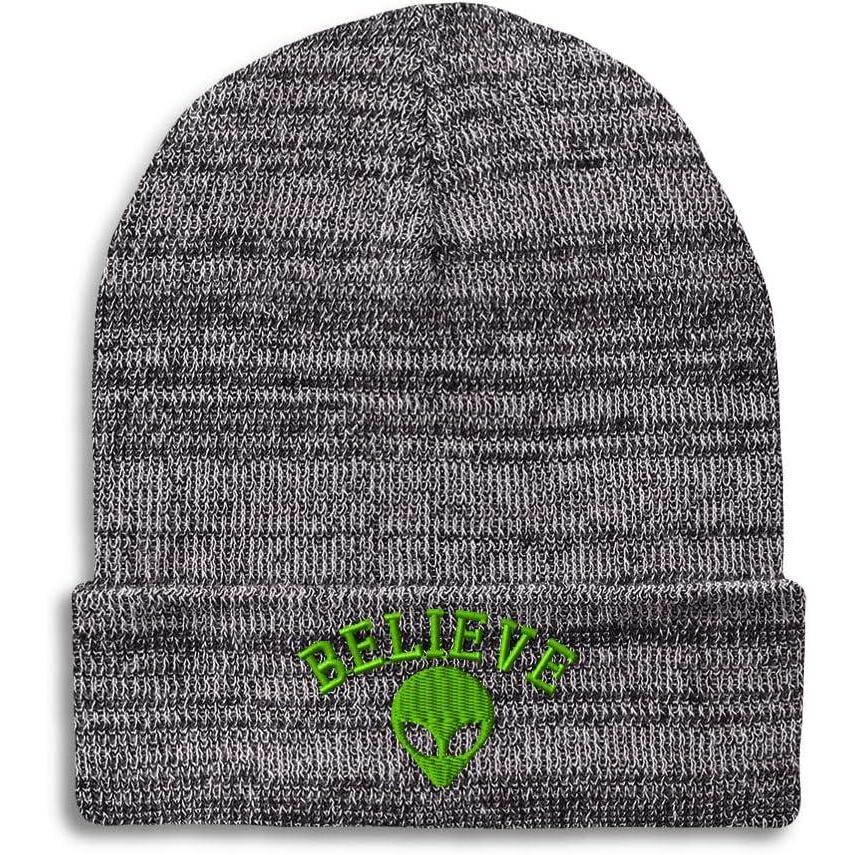 Beanies for Men Believe Alien Embroidery Style B Symbols Winter Hats for Women Acrylic Skull Cap 1 Size(Heather Grey Personalized Text Here)