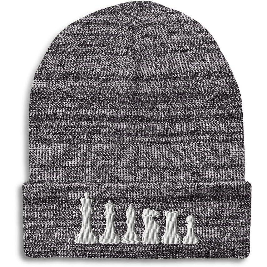 Beanies for Men Chess Set White Embroidery Chess Winter Hats for Women Acrylic Skull Cap 1 Size(Heather Grey Design Only)