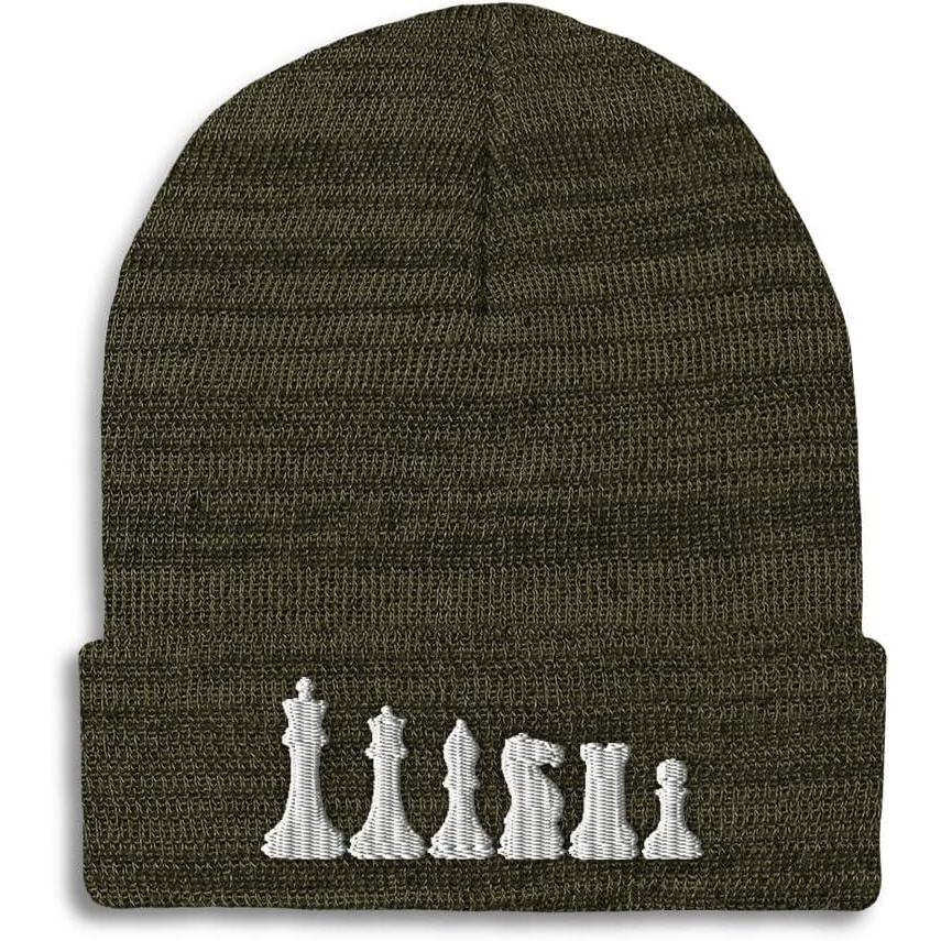 Beanies for Men Chess Set White Embroidery Chess Winter Hats for Women Acrylic Skull Cap 1 Size(Heather Olive Green Design Only)