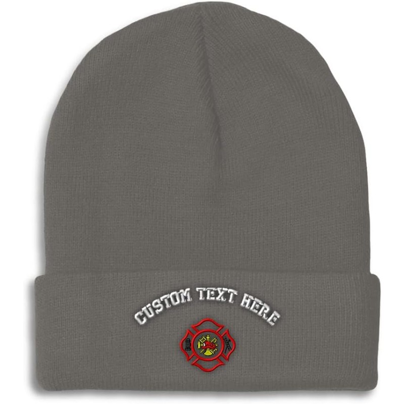 Beanies for Men Maltese Cross Firefighter Embroidery Logo Winter Hats for Women Acrylic Skull Cap 1 Size(Dark Grey Personalized Text Here)