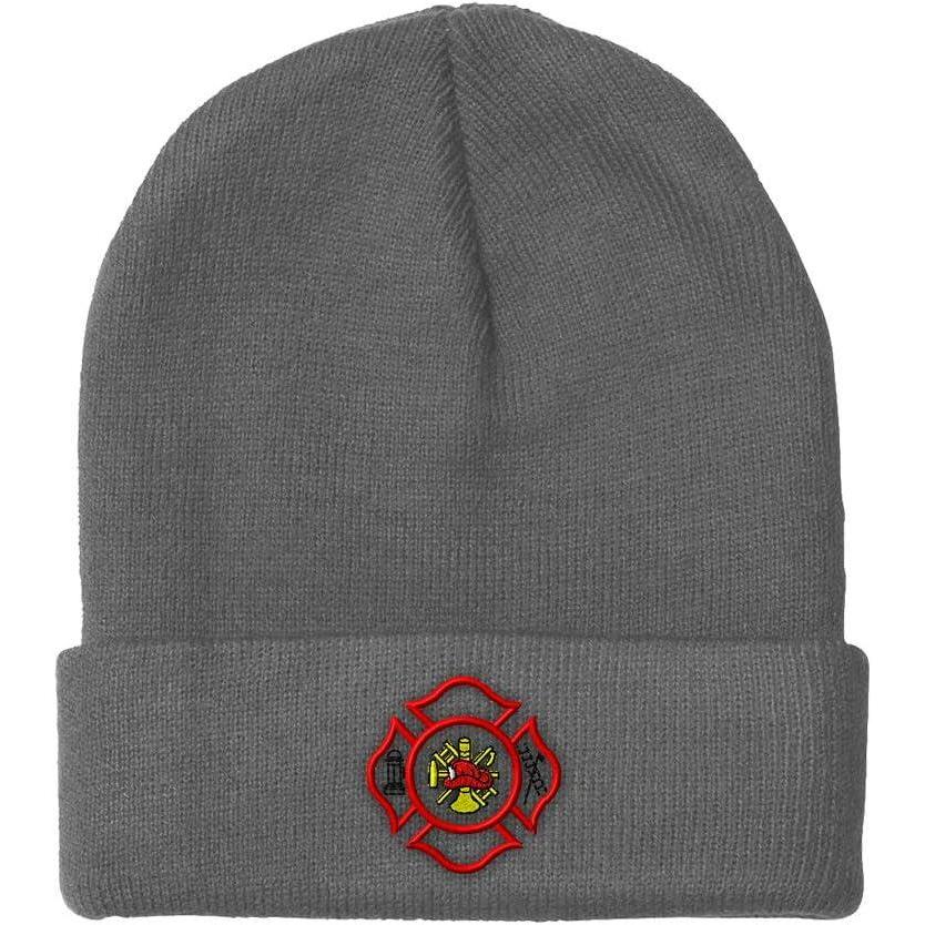 Beanies for Men Maltese Cross Firefighter Embroidery Logo Winter Hats for Women Acrylic Skull Cap 1 Size(Heather Grey Design Only)