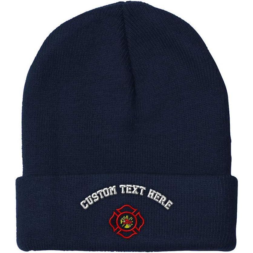 Beanies for Men Maltese Cross Firefighter Embroidery Logo Winter Hats for Women Acrylic Skull Cap 1 Size(Navy Personalized Text Here)