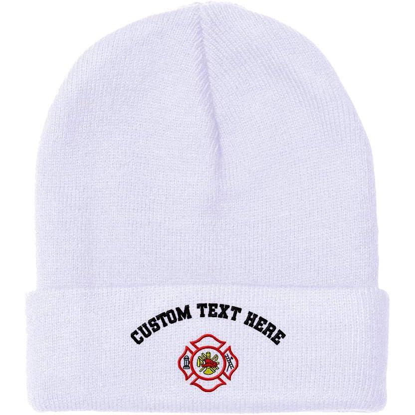 Beanies for Men Maltese Cross Firefighter Embroidery Logo Winter Hats for Women Acrylic Skull Cap 1 Size(White Personalized Text Here)