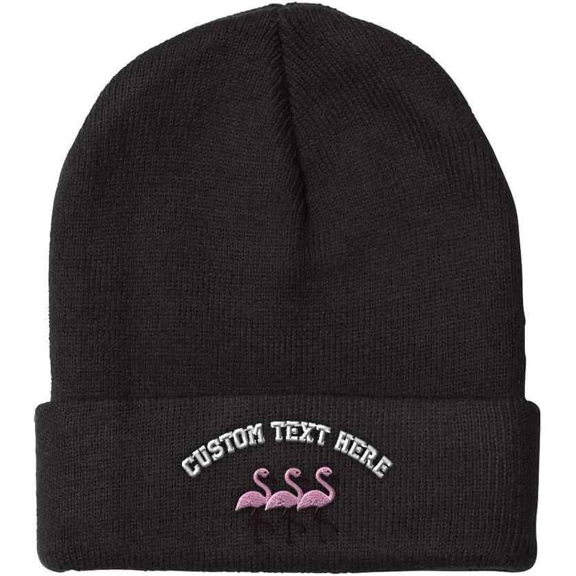 Beanies for Men Pink Flamingos Embroidery Wild Animals Winter Hats for Women Acrylic Skull Cap 1 Size(Black Personalized Text Here)