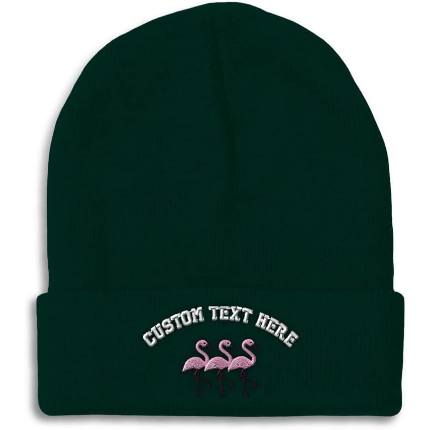 Beanies for Men Pink Flamingos Embroidery Wild Animals Winter Hats for Women Acrylic Skull Cap 1 Size(Forest Green Personalized Text Here)