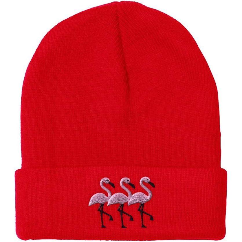 Beanies for Men Pink Flamingos Embroidery Wild Animals Winter Hats for Women Acrylic Skull Cap 1 Size(Red Design Only)