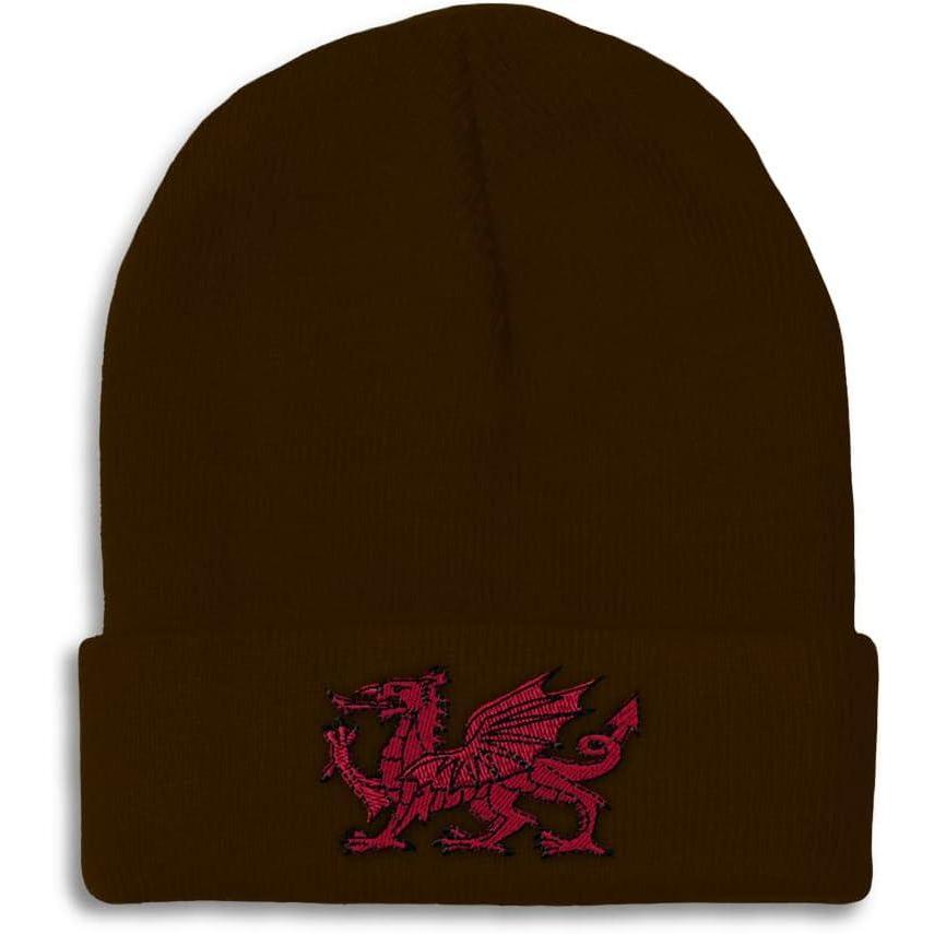 Beanies for Men Wales Flag Dragon Seal Embroidery Europe Winter Hats for Women Acrylic Skull Cap 1 Size(Brown Design Only)
