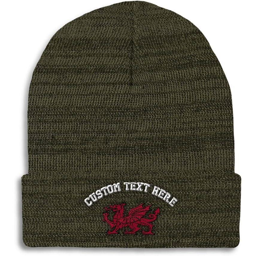 Beanies for Men Wales Flag Dragon Seal Embroidery Europe Winter Hats for Women Acrylic Skull Cap 1 Size(Heather Olive Green Personalized Text Here)