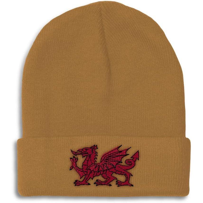 Beanies for Men Wales Flag Dragon Seal Embroidery Europe Winter Hats for Women Acrylic Skull Cap 1 Size(Khaki Design Only)