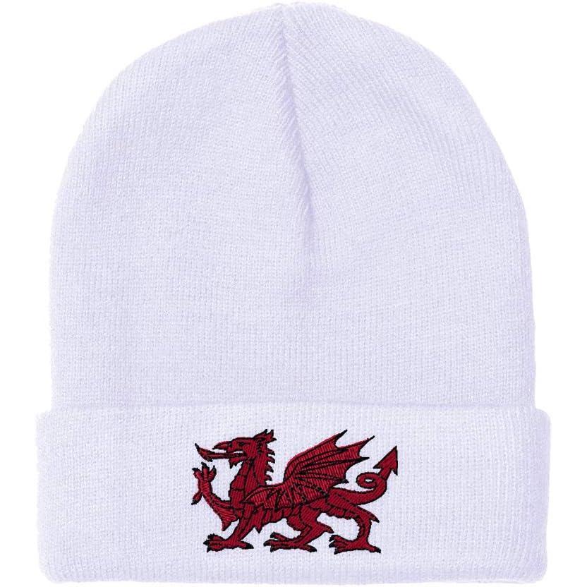 Beanies for Men Wales Flag Dragon Seal Embroidery Europe Winter Hats for Women Acrylic Skull Cap 1 Size(White Design Only)