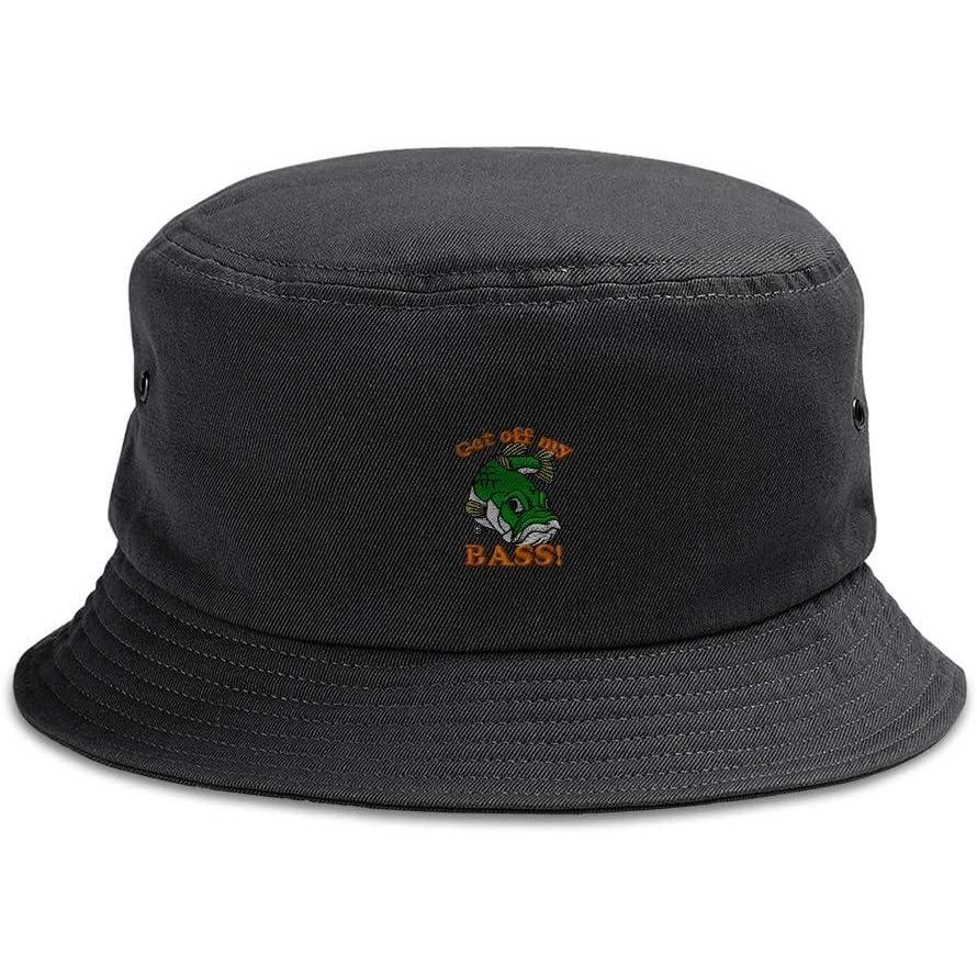 Bucket Apparel Hat Fish Get Off My Bass Embroidery Cotton Hats for Men & Women(Black)
