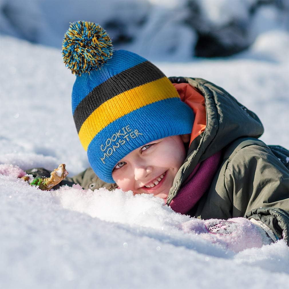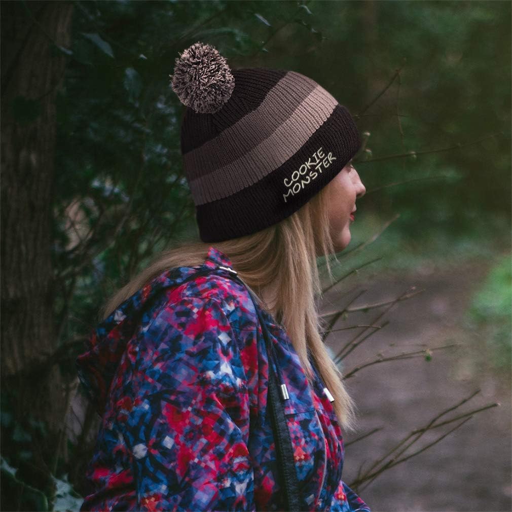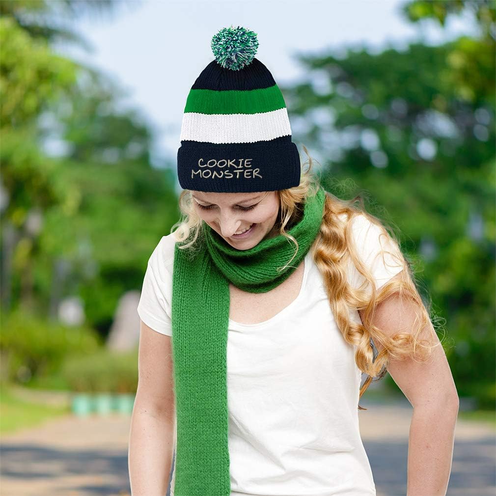 Cookie Monster Embroidered Unisex Adult Acrylic Vintage Striped Removable Pom Pom Beanie Winter Hat – Blue/Black/Yellow Stripes, One Size(Cookie Monster Embroidered Unisex Adult Acrylic Vintage Striped Removable Pom Pom Beanie Winter Hat – Blue/Black/Yellow Stripes, One Size)