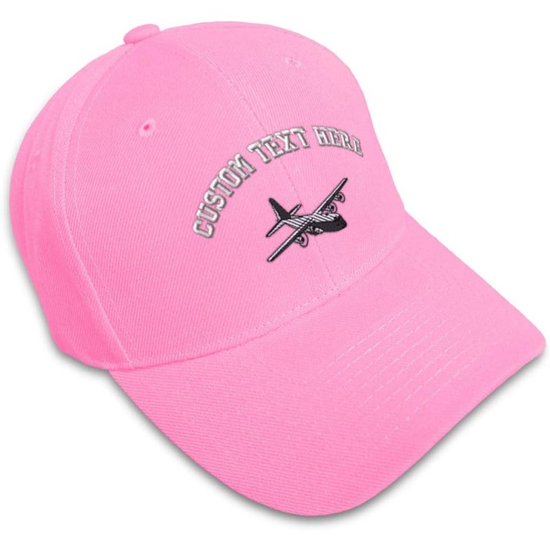 Custom Baseball Cap C-130 Aircraft Embroidery Acrylic Dad Hats for Men & Women(Soft Pink Personalized Text Here)