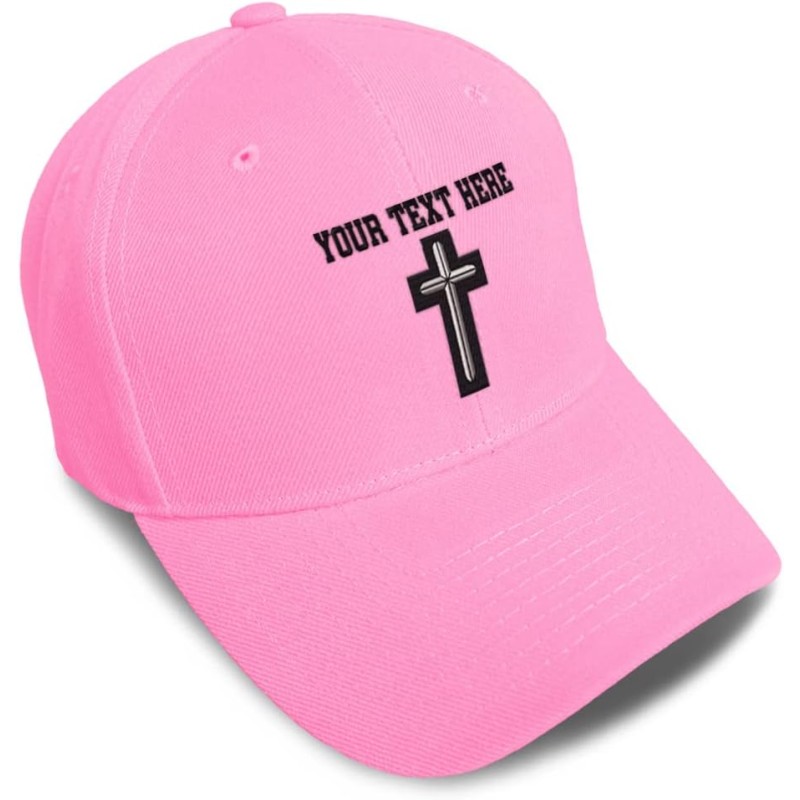 Custom Baseball Cap Chaplain Cross Embroidery Acrylic Dad Hats for Men & Women(Soft Pink Personalized Text Here)
