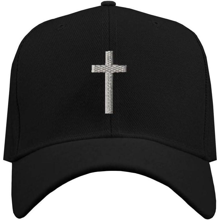 Custom Baseball Cap Cross Silver Embroidery Acrylic Dad Hats for Men & Women(Black Design Only)