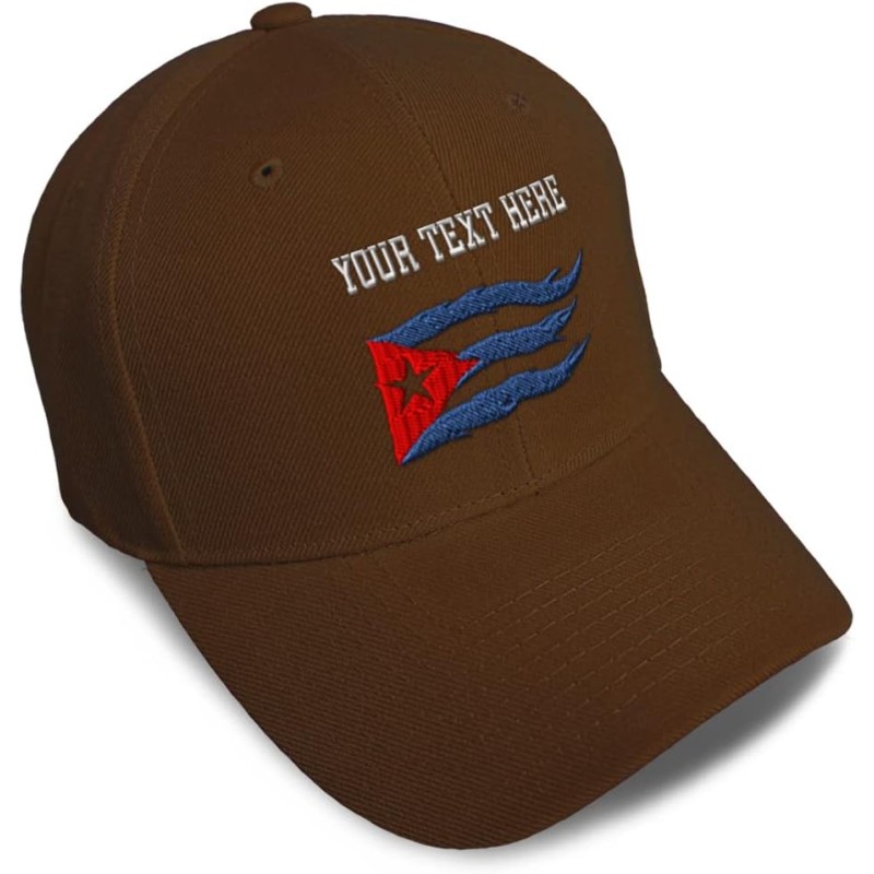Custom Baseball Cap Cuba Cuban Flag Flame Embroidery Flags Acrylic Automitive Dad Hats for Men & Women(Brown Personalized Text Here)