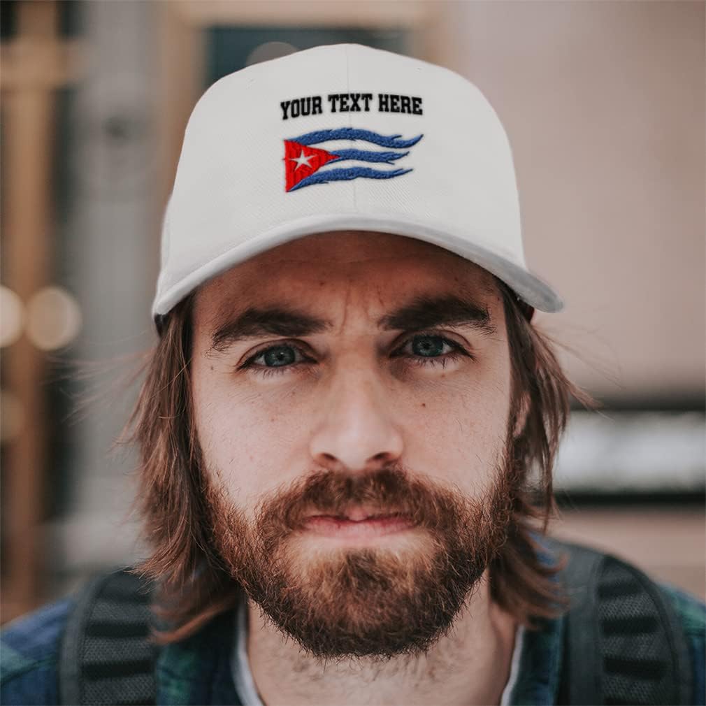 Custom Baseball Cap Cuba Cuban Flag Flame Embroidery Flags Acrylic Automitive Dad Hats for Men & Women(Gray Personalized Text Here)