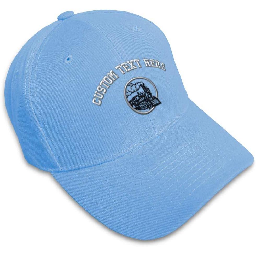 Custom Baseball Cap Train Embroidery Trains Acrylic Dad Hats for Men & Women(Light Blue Personalized Text Here)