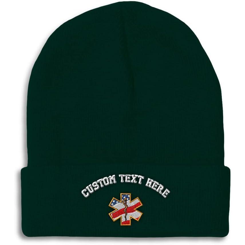 Custom Beanies for Men American Flag Embroidery Flags Winter Hats for Women Acrylic Skull Cap 1 Size(Forest Green Personalized Text Here)