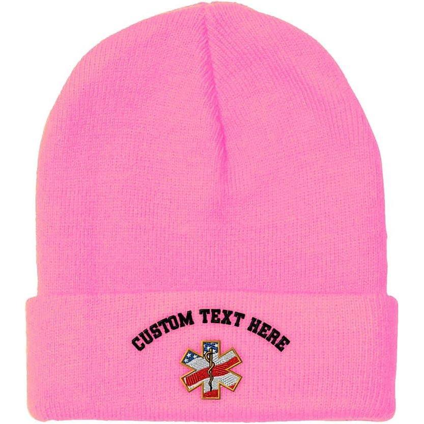 Custom Beanies for Men American Flag Embroidery Flags Winter Hats for Women Acrylic Skull Cap 1 Size(Soft Pink Personalized Text Here)