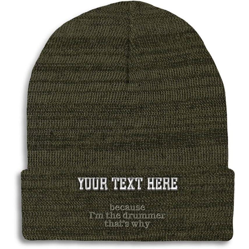 Custom Beanies for Men Because I’m The Drummer Embroidery Winter Hats for Women Acrylic Skull Cap 1 Size(Heather Olive Green Personalized Text Here)