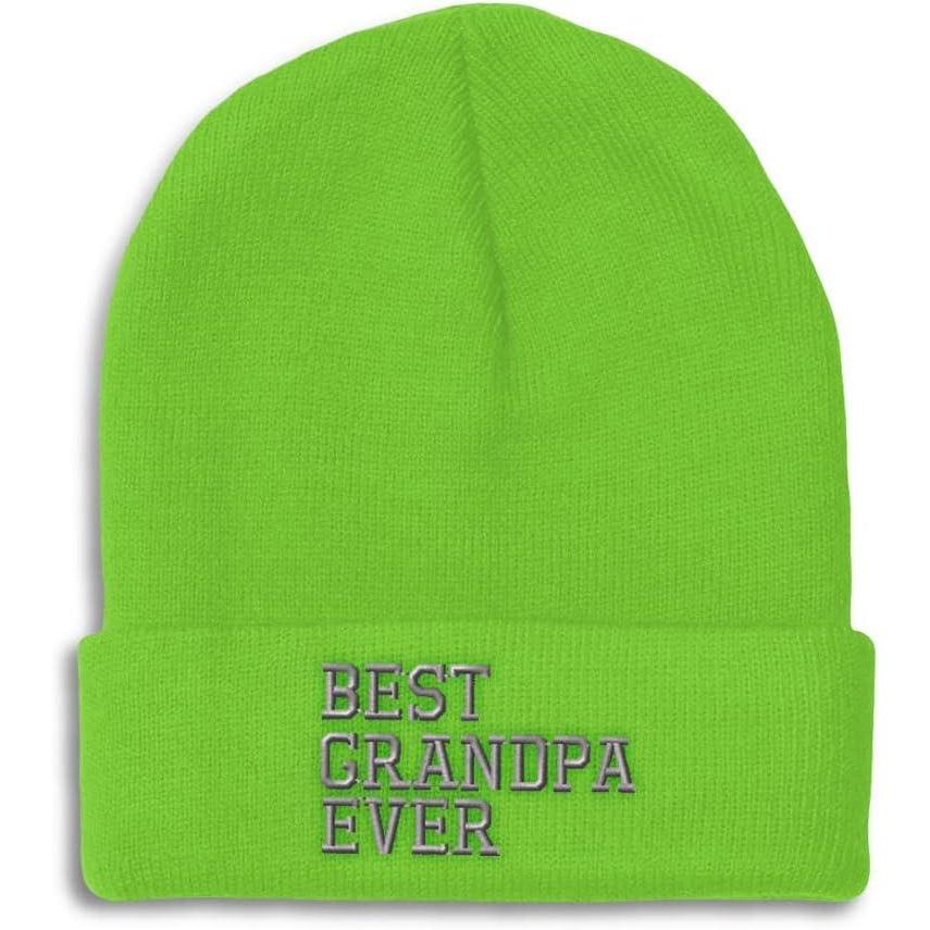 Custom Beanies for Men Best Grandpa Ever Aembroidery Humor Winter Hats for Women Acrylic Skull Cap 1 Size(Lime Design Only)