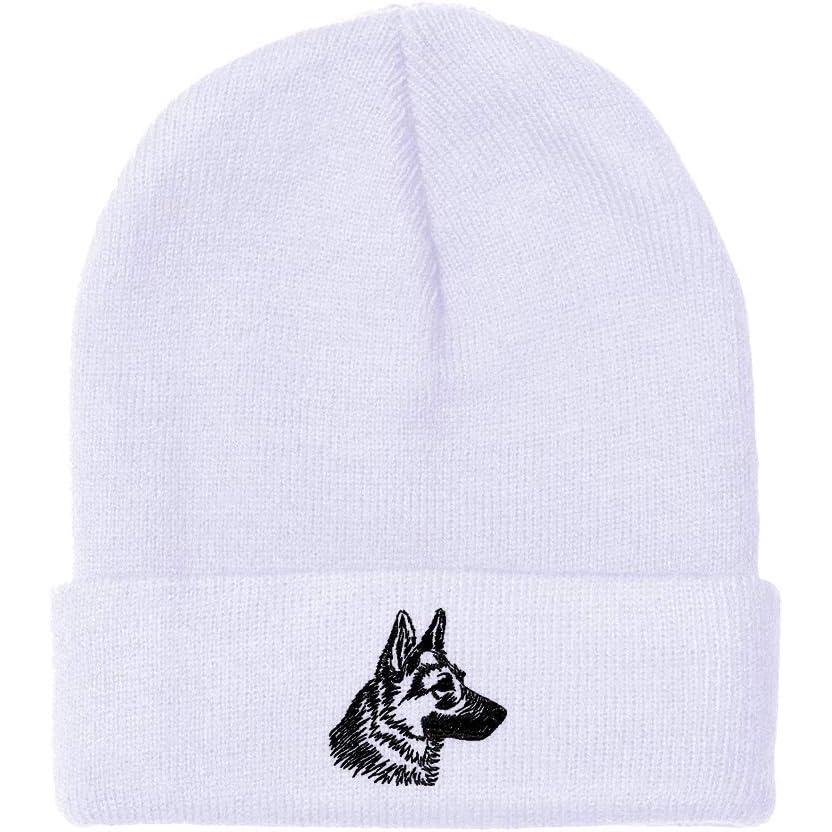 Custom Beanies for Men Black German Shepherd Head Embroidery Winter Hats for Women Acrylic Skull Cap 1 Size(White Design Only)