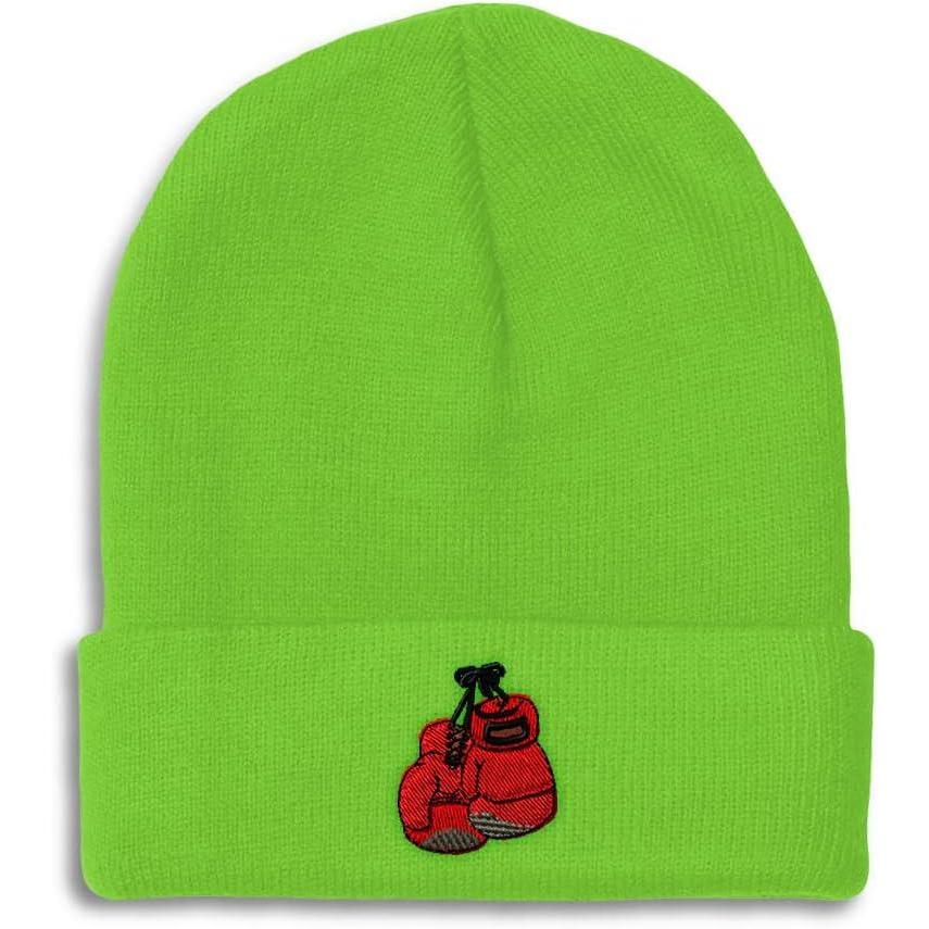 Custom Beanies for Men Boxing Gloves Embroidery Boxing Winter Hats for Women Acrylic Skull Cap 1 Size(Lime Design Only)