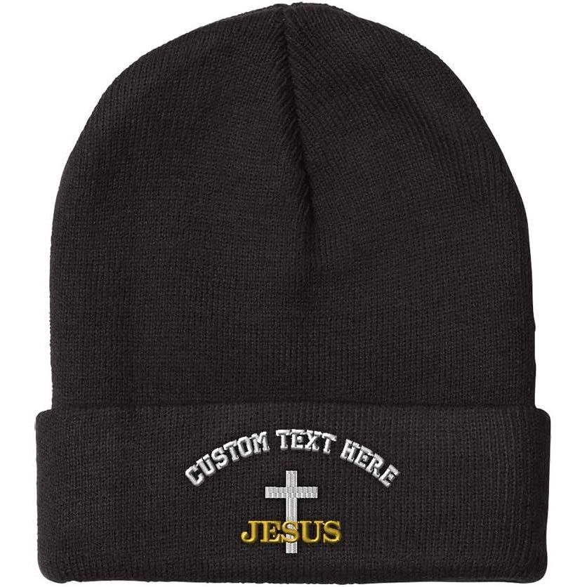 Custom Beanies for Men Christian Cross, Jesus Embroidery Winter Hats for Women Acrylic Skull Cap 1 Size(Black Personalized Text Here)