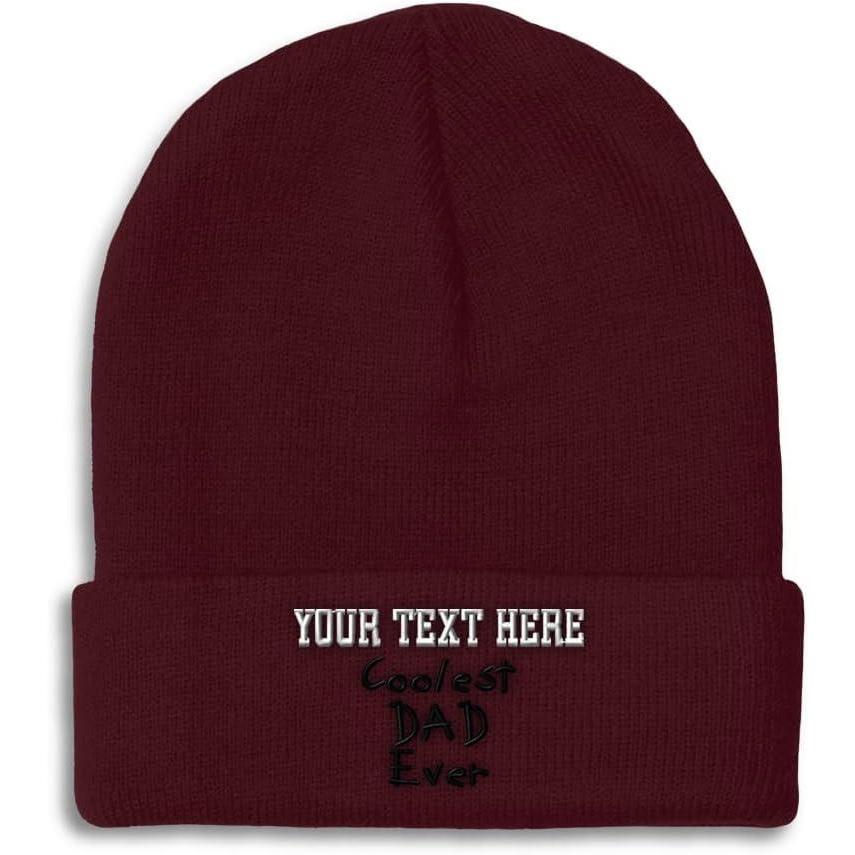 Custom Beanies for Men Coolest Dad Ever Black Embroidery Dad Winter Hats for Women Acrylic Skull Cap 1 Size(Burgundy Personalized Text Here)