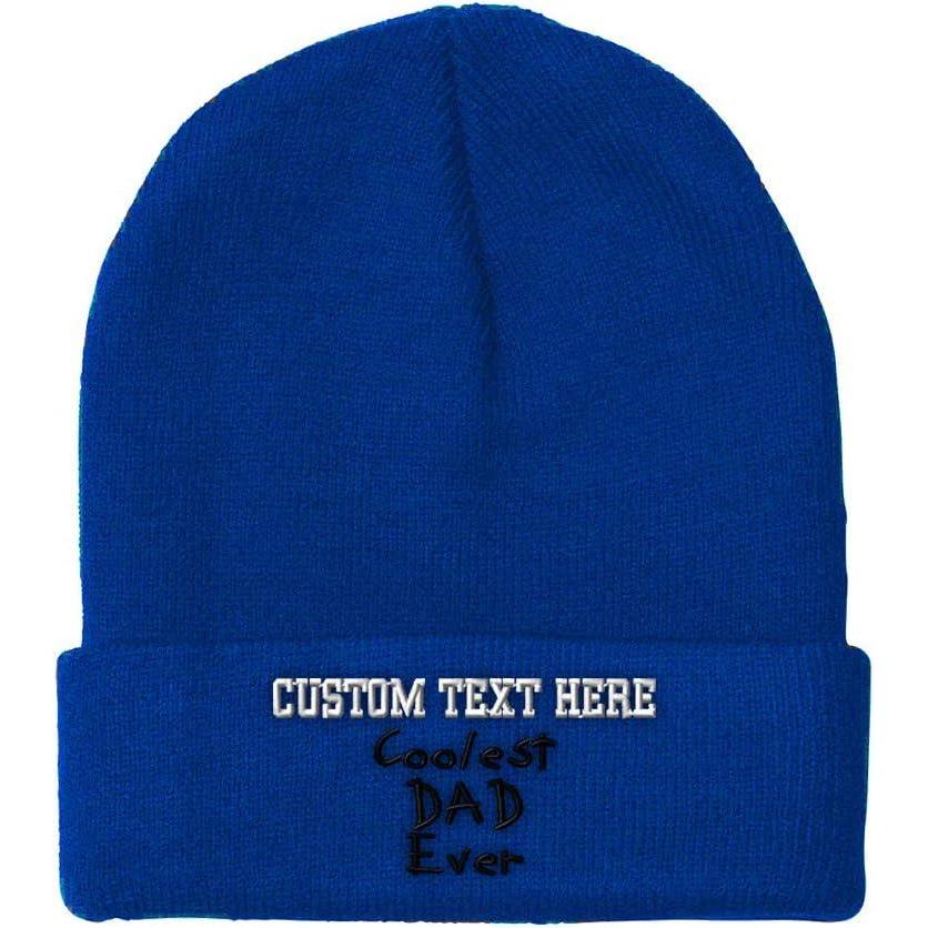 Custom Beanies for Men Coolest Dad Ever Black Embroidery Dad Winter Hats for Women Acrylic Skull Cap 1 Size(Royal Blue Personalized Text Here)