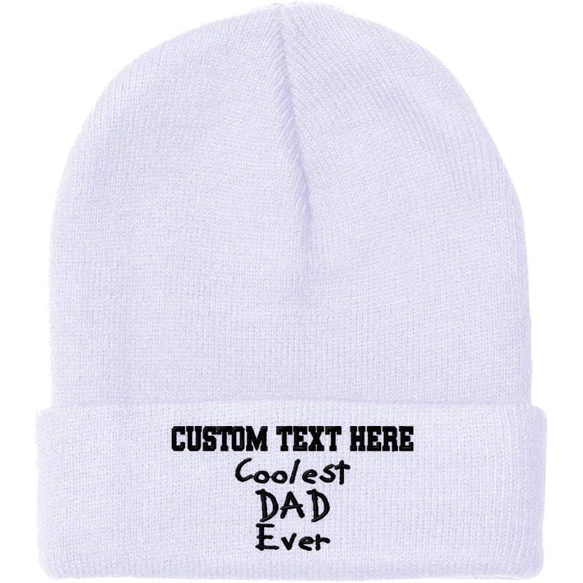Custom Beanies for Men Coolest Dad Ever Black Embroidery Dad Winter Hats for Women Acrylic Skull Cap 1 Size(White Personalized Text Here)