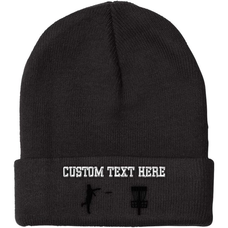 Custom Beanies for Men Disc Golf Sport Embroidery Disc Golf Winter Hats for Women Acrylic Skull Cap 1 Size(Black Personalized Text Here)