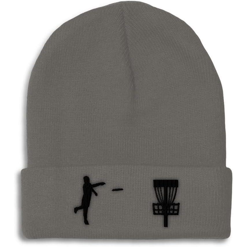 Custom Beanies for Men Disc Golf Sport Embroidery Disc Golf Winter Hats for Women Acrylic Skull Cap 1 Size(Dark Grey Design Only)