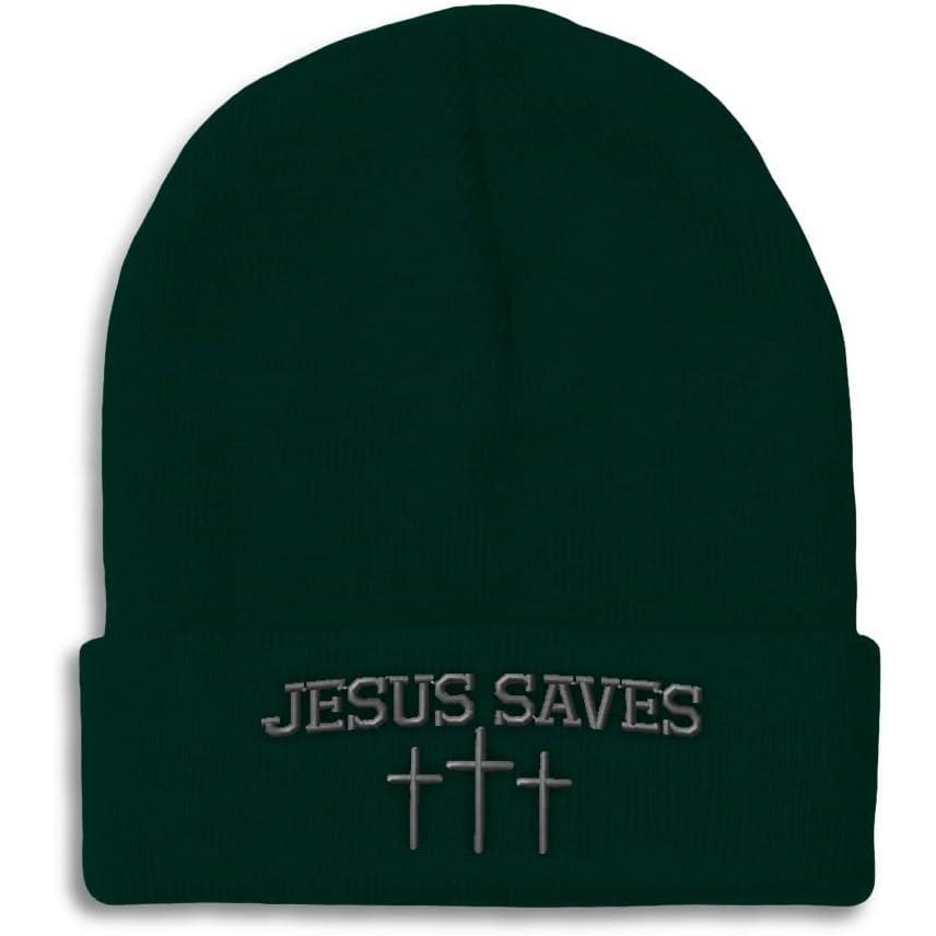 Custom Beanies for Men Jesus Saves Gray Embroidery Christian Winter Hats for Women Acrylic Skull Cap 1 Size(Forest Green Personalized Text Here)