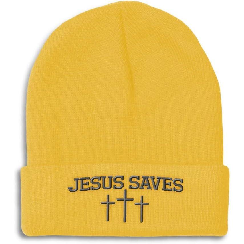 Custom Beanies for Men Jesus Saves Gray Embroidery Christian Winter Hats for Women Acrylic Skull Cap 1 Size(Yellow Design Only)