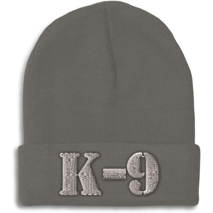 Custom Beanies for Men K-9 Silver Logo Embroidery Letters Winter Hats for Women Acrylic Skull Cap 1 Size(Dark Grey Design Only)