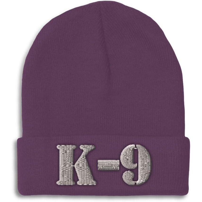 Custom Beanies for Men K-9 Silver Logo Embroidery Letters Winter Hats for Women Acrylic Skull Cap 1 Size(Purple Design Only)
