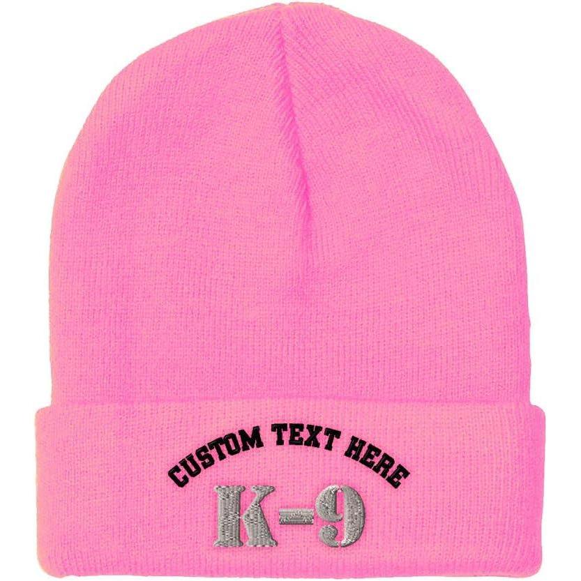 Custom Beanies for Men K-9 Silver Logo Embroidery Letters Winter Hats for Women Acrylic Skull Cap 1 Size(Soft Pink Personalized Text Here)