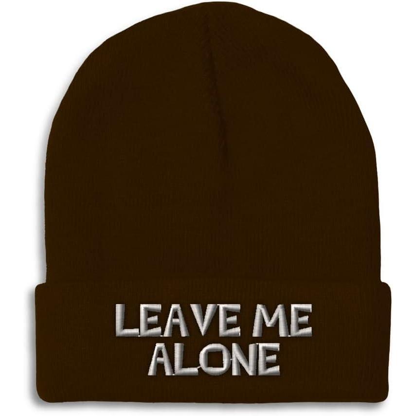 Custom Beanies for Men Leave Me Alone Embroidery Anger Winter Hats for Women Acrylic Skull Cap 1 Size(Brown Design Only)