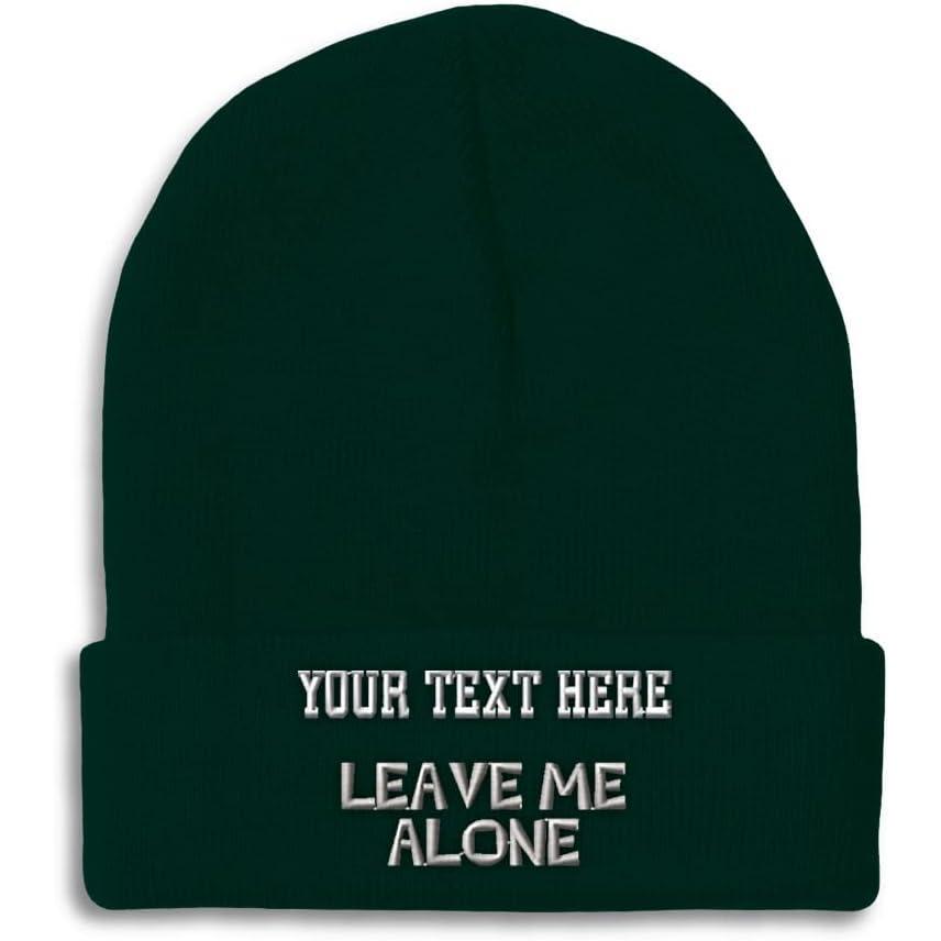 Custom Beanies for Men Leave Me Alone Embroidery Anger Winter Hats for Women Acrylic Skull Cap 1 Size(Forest Green Personalized Text Here)