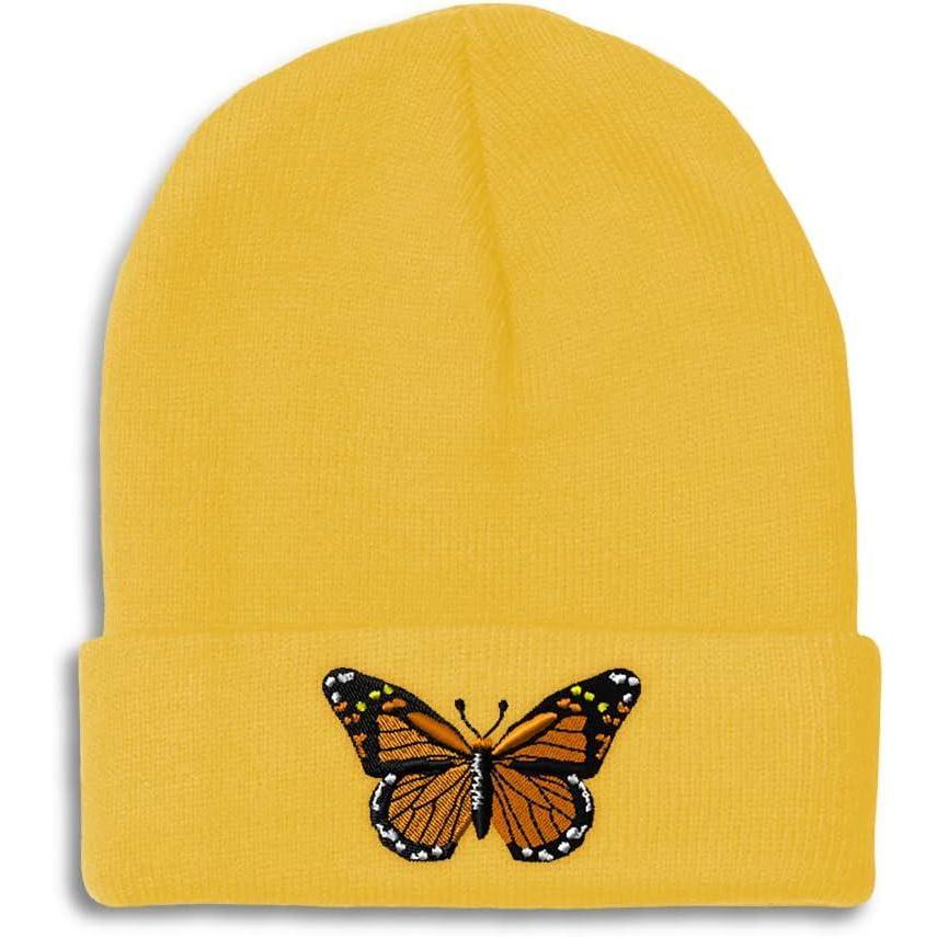 Custom Beanies for Men Monarch Butterfly Embroidery Insects Winter Hats for Women Acrylic Skull Cap 1 Size(Yellow Design Only)
