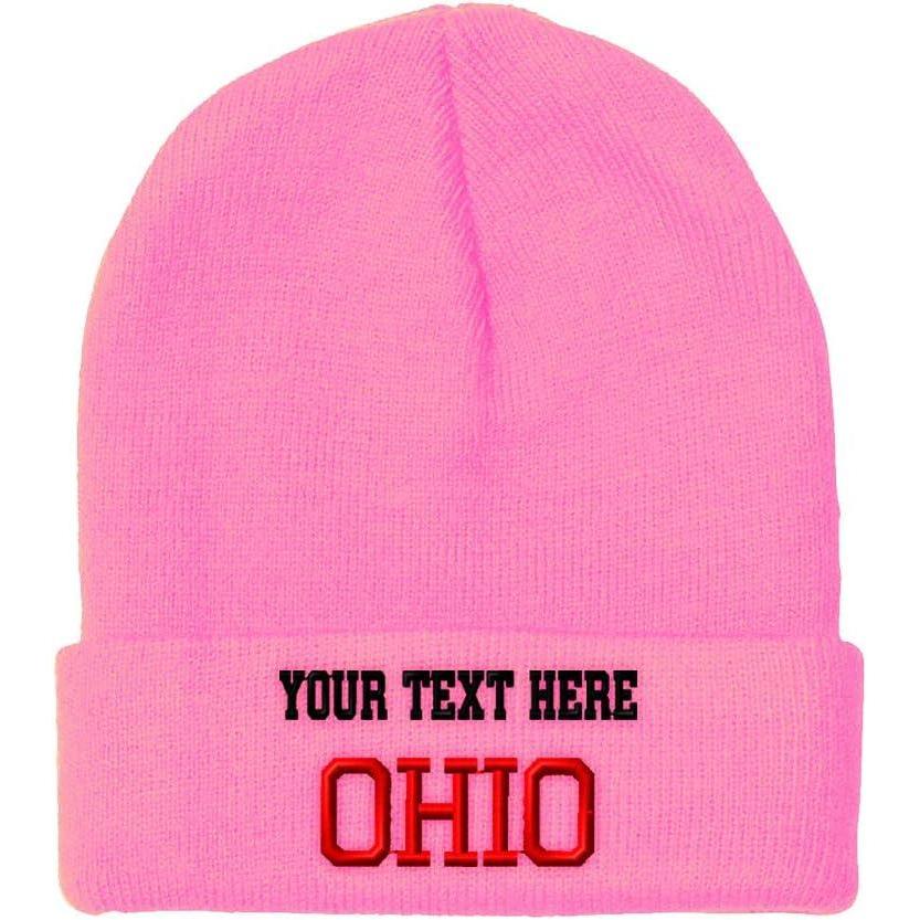 Custom Beanies for Men Ohio State USA America B Embroidery Winter Hats for Women Acrylic Skull Cap 1 Size(Soft Pink Personalized Text Here)