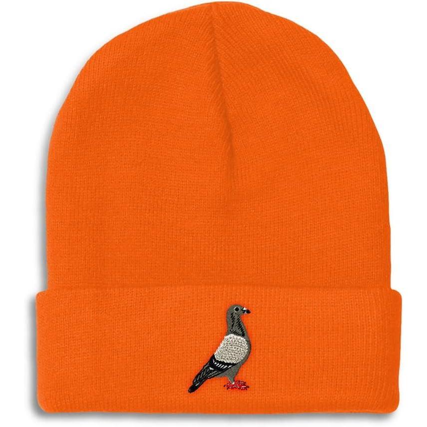 Custom Beanies for Men Pigeon B Embroidery Birds Winter Hats for Women Acrylic Skull Cap 1 Size(Orange Design Only)