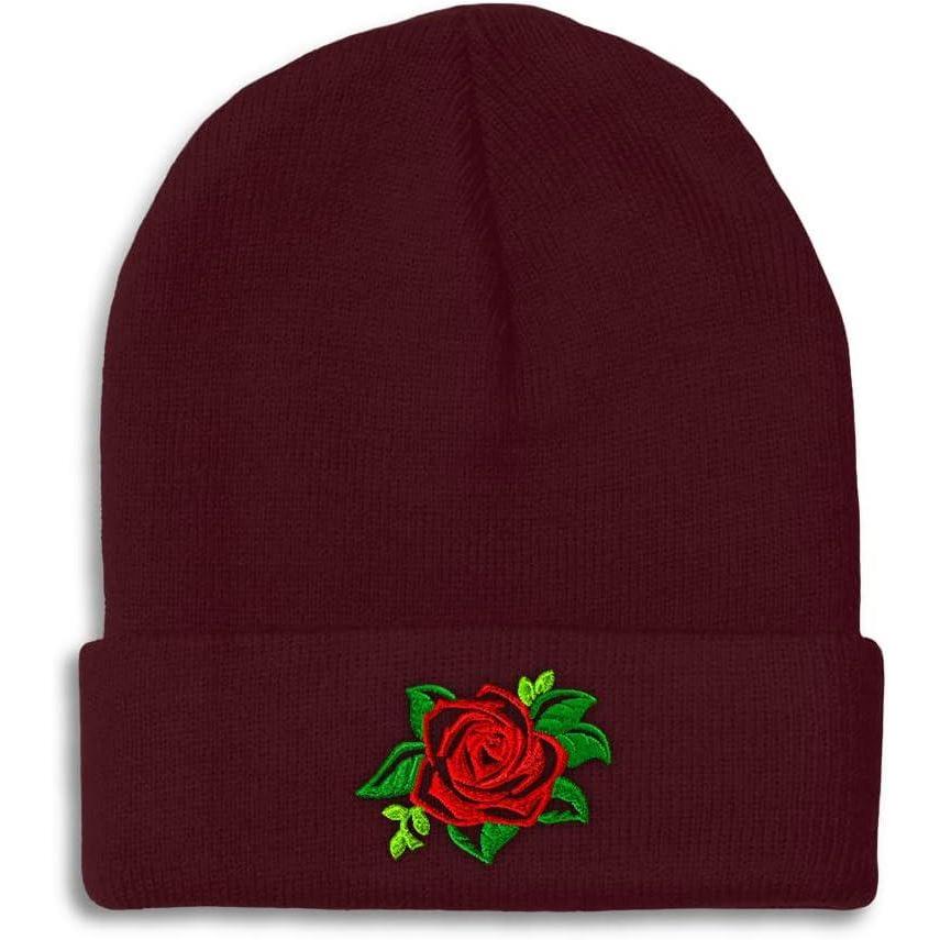 Custom Beanies for Men Rose Flower Style A No Border Embroidery Winter Hats for Women Skull Cap 1 Size(Burgundy Design Only)