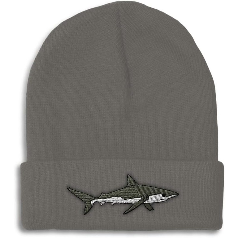 Custom Beanies for Men Shark Embroidery Ocean and Sea Life Winter Hats for Women Acrylic Skull Cap 1 Size(Dark Grey Design Only)