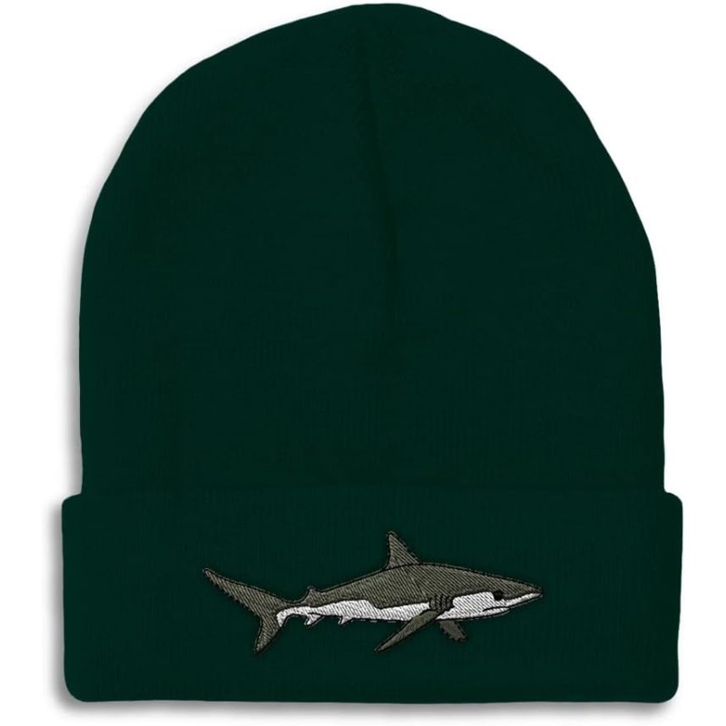 Custom Beanies for Men Shark Embroidery Ocean and Sea Life Winter Hats for Women Acrylic Skull Cap 1 Size(Forest Green Design Only)